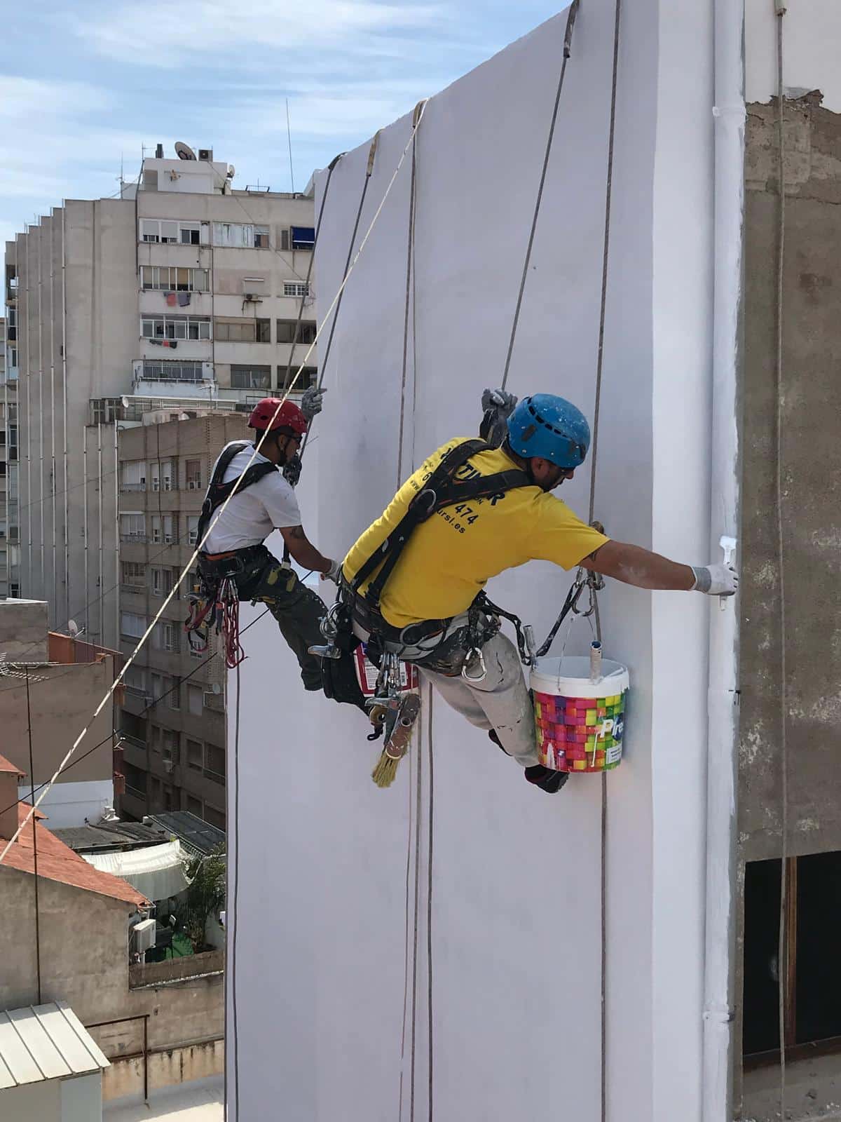 Renovamos fachadas completas utilizando sistemas de acceso vertical sin andamios tradicionales. Nuestro proceso incluye limpieza, reparación de fisuras e imprimación especializada con pinturas de máxima resistencia adaptadas al clima de Murcia.